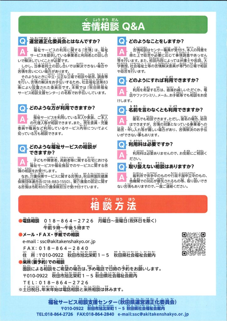 運営適正化委員会 秋田県福祉サービス相談支援センター
